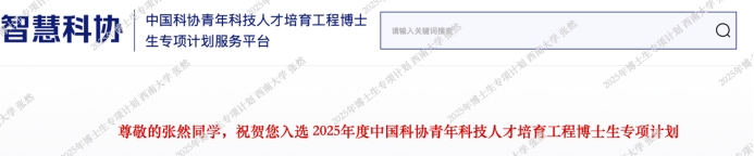 图1:张然入选中国科协青年科技人才培育工程博士生专项计划