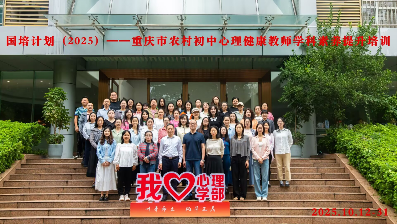 2025年10月12日至31日,由重庆市教育委员会组织实施、西南大学心理学部承办的“国培计划(2025)——重庆市农村教师学科素养提升培训(初中心理健康)”顺利完成全部研修课程并举行结业典礼。本次培训聚焦于新时代心理健康教育发展需求,通过系统化课程设计与实践,为来自重庆市各区县的50名初中专兼职心理健康教师提供了为期20天的专业提升之旅。