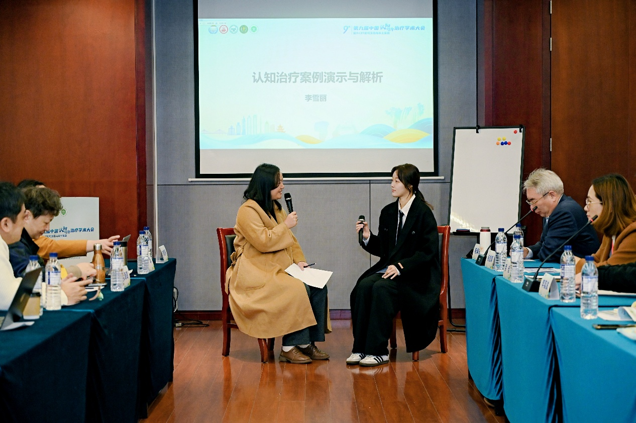 在“认知行为治疗不同派别的个案演示与解析”专题中,学部应用心理临床与咨询方向研究生唐琪、刘怡菲和张静怡扮演来访者,由南京医科大学附属脑科医院辩证行为治疗师杨华、广东省精神卫生中心心理治疗部门负责人李雪丽、广州市公安局心理健康服务中心葛璐璐进行认知行为治疗三个主要分支认知治疗、辩证行为治疗和接纳承诺疗法的临床案例演示,展开多角度的技术解析与概念化探讨,推动CBT技术的整合与精准应用。