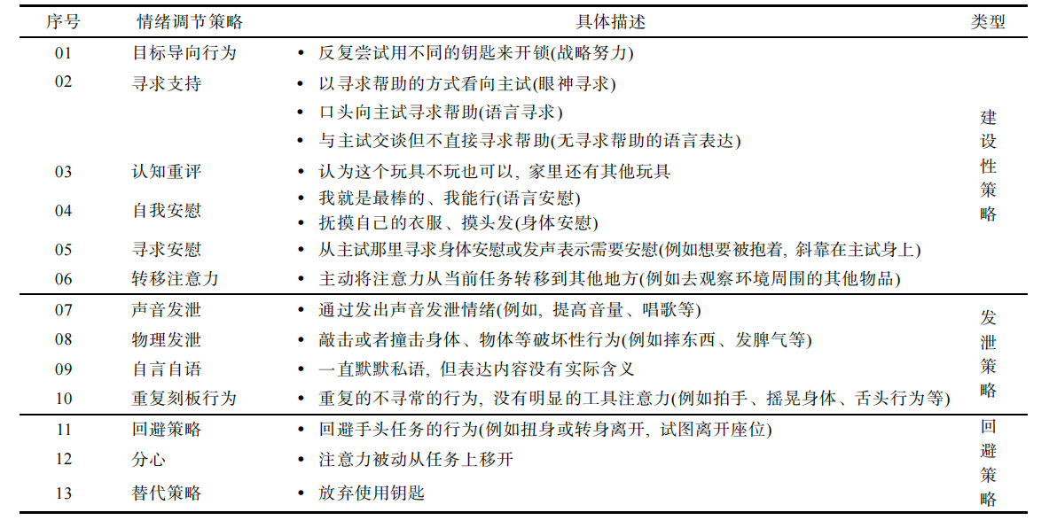 表1. 儿童13种情绪调节策略划分表