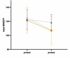 结果发现,(1)结合正念和认知策略的综合干预课程能够显著改善ADHD儿童的核心症状及提升执行功能,且与对照组相比,干预组有更多儿童表现出可靠的临床改善(见图2);(2)进一步分析表明,干预训练对ADHD儿童核心症状的改善主要是通过提升执行功能来实现的;(3)经过4个月的追踪随访(见图3),干预训练对核心症状和执行功能缺陷的改善效果可持续存在。值得注意的是,以正念为主的干预组对ADHD儿童多动冲动症状及执行功能缺陷的改善效果更显著,且这种效果更稳定。总之,本研究首次提出了一种可行和有效的综合正念和认知策略的干预方案,为ADHD儿童提供了一种有前景的非药物治疗方法,并证明了执行功能在缓解核心症状中的关键作用。这为日后开发与执行功能相关的心理行为干预训练和非侵入性神经调控干预方案提供了重要的科学依据。