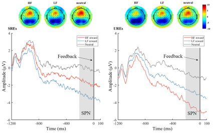 研究招募60名女性限制性饮食者(成功与失败者各30名),采用食物激励延迟任务(图1)。结果发现:在期待高热量食物时,失败者表现出更强的刺激前负波(stimulus preceding negativity; SPN)(图2),反映其“想要”动机更高;而在接收食物反馈时,两组的P300波幅无差异(图3),表明“喜欢”程度相近。这说明限制性饮食的成败关键可能不在于进食后的愉悦感受,而在于对高热量食物的事前渴求强度。该研究从时间进程上分离了“想要”与“喜欢”在饮食行为中的作用,为理解饮食自我调节失败提供了更精细的神经证据。