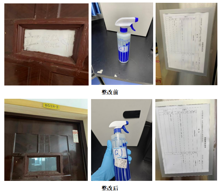 及时联系实验室负责人处理了隐患问题,将视窗遮挡板清除,张贴了试剂样品标签并及时更新了冰箱库存清单,完成隐患整改。