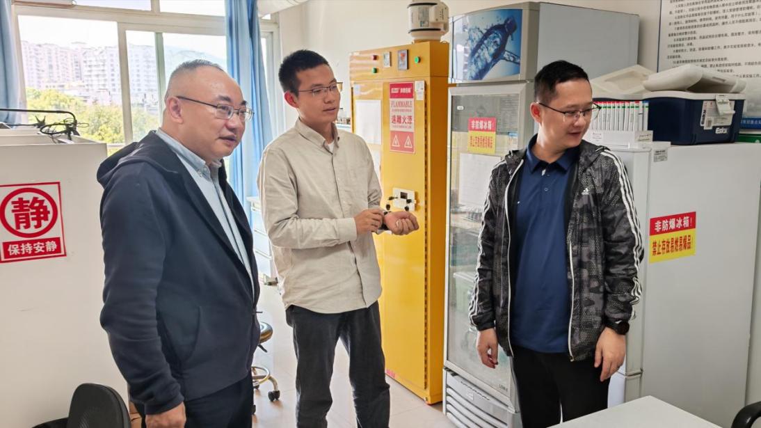 检查间隙,学部领导与现场开展科研工作的师生亲切交流,详细询问实验进展、研究难点及实际需求,认真倾听他们的需求与建议。